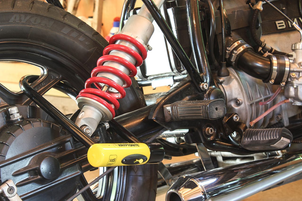 SI VOUS UTILISEZ UN DISQUE ANTIVOL KRYPTONITE sur votre frein, utilisez également un câble de rappel Kryptonite pour éviter de vous en aller avec l'antivol enclenché.